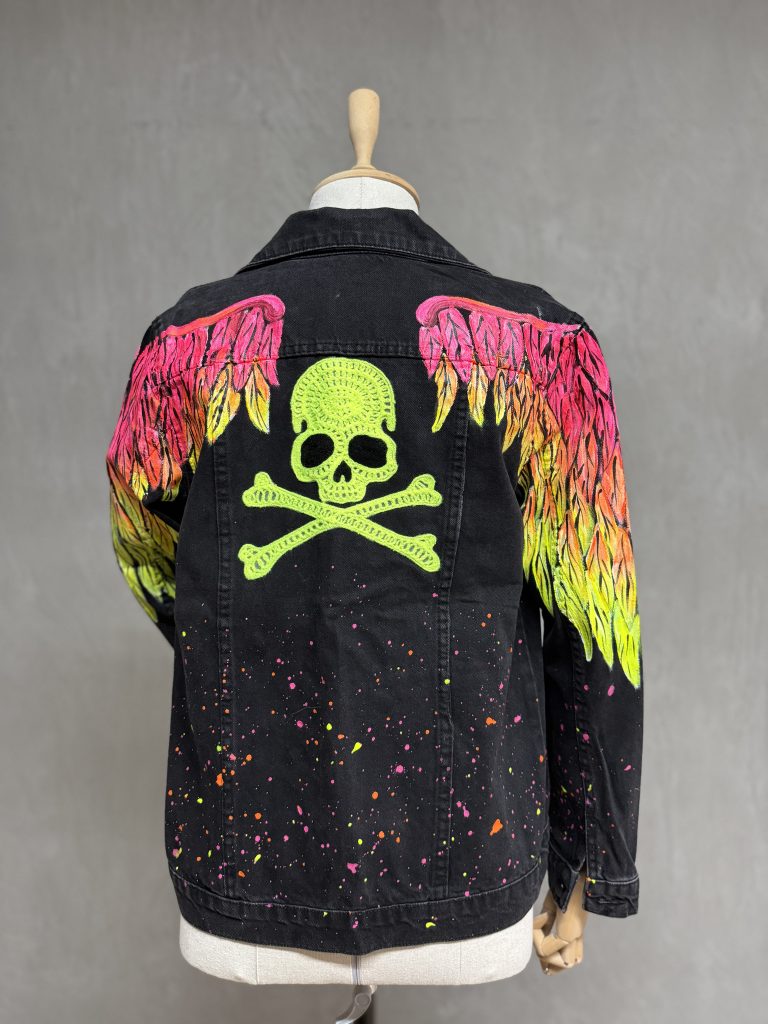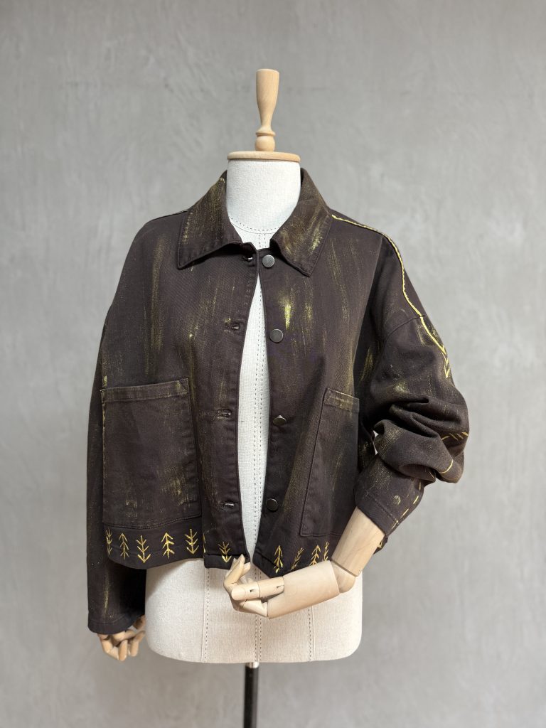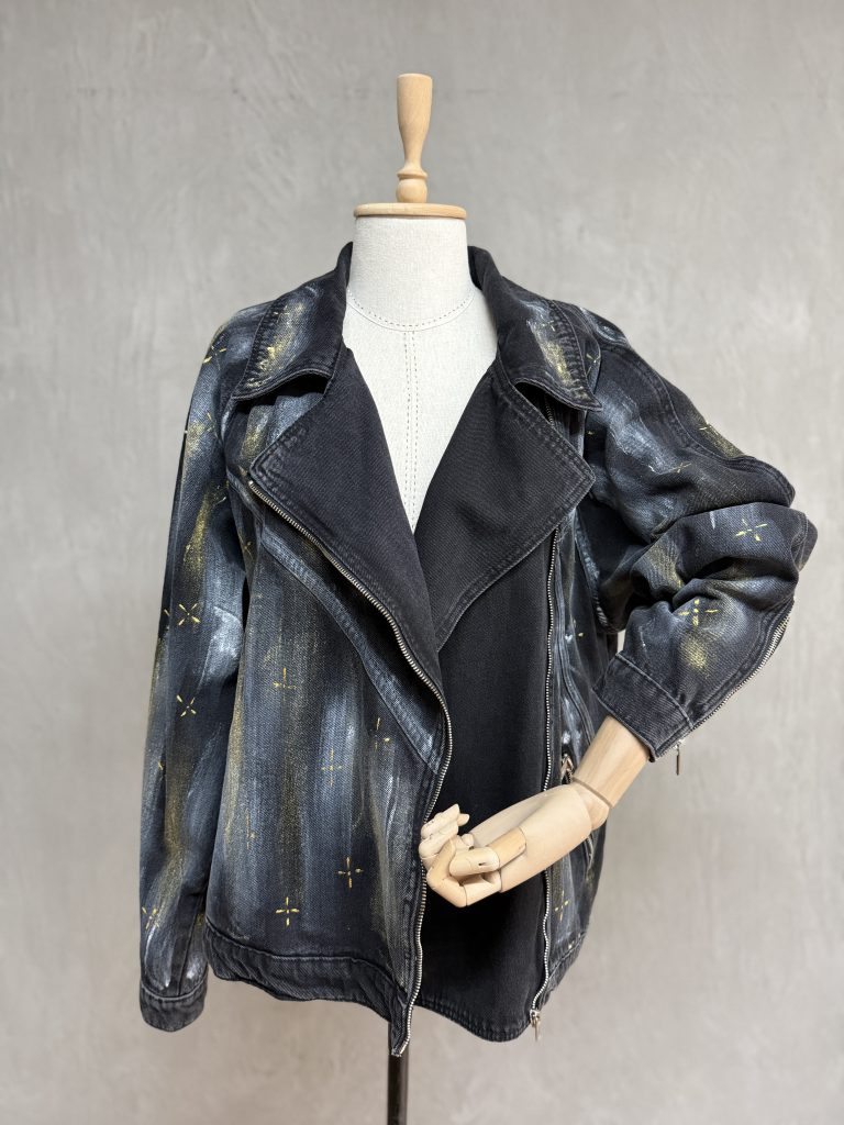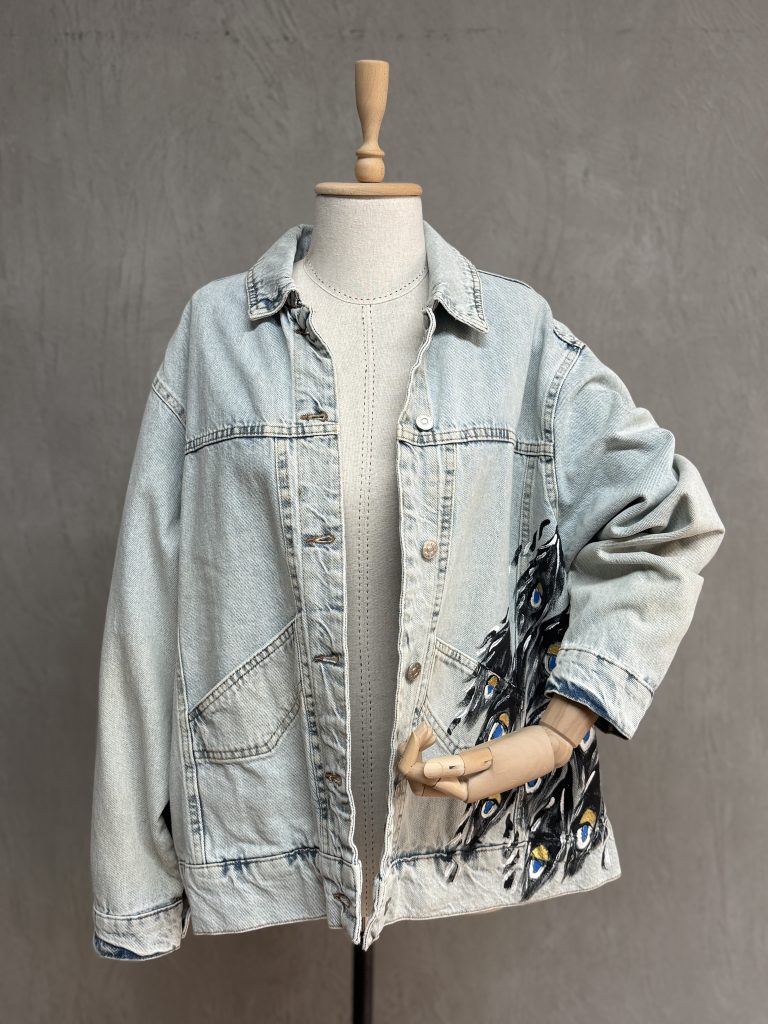 Butterfly Kürklü Boyama Denim Ceket – Leopar