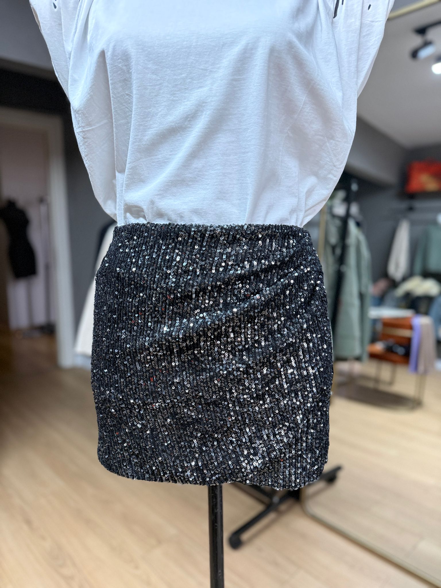 Payet Etek, modern ve şık tasarımıyla özel günlerden gece davetlerine kadar birçok kombin için ideal bir parçadır. Parlak payet dokusu sayesinde dikkat çekici bir görünüm sunarken, rahat kalıbı gün boyu konfor sağlar. Bluz, gömlek veya crop üstlerle kolayca kombinlenebilir.