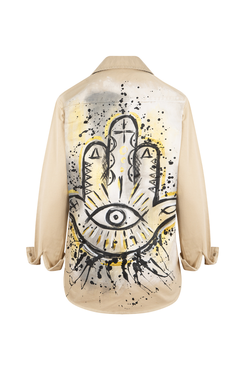 Bakmış olduğunuz ürün kişiye özel olarak boyanmaktadır. %100 pamuklu kot kumaşından üretilip, doğal kumaş boyalarıyla boyanmaktadır. Her bir ürün giyilebilir sanat anlayışıyla, kişiye özel olarak tasarlanmaktadır.