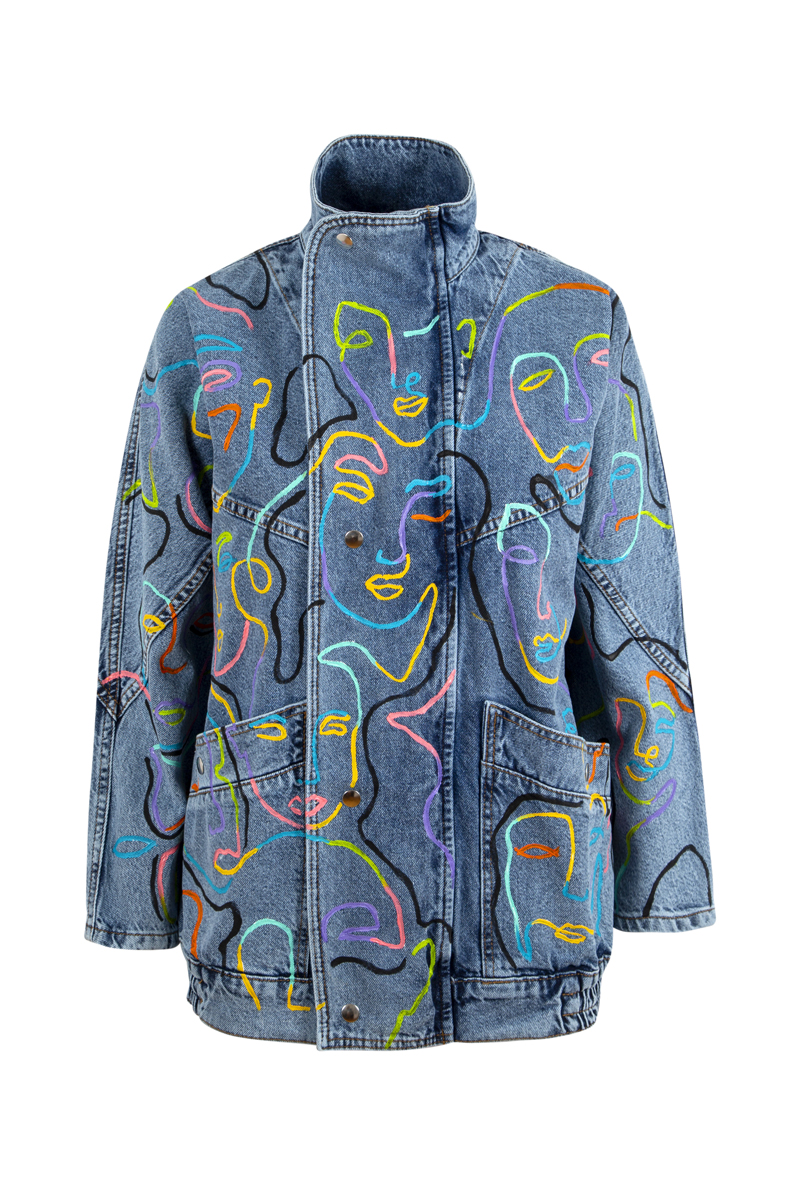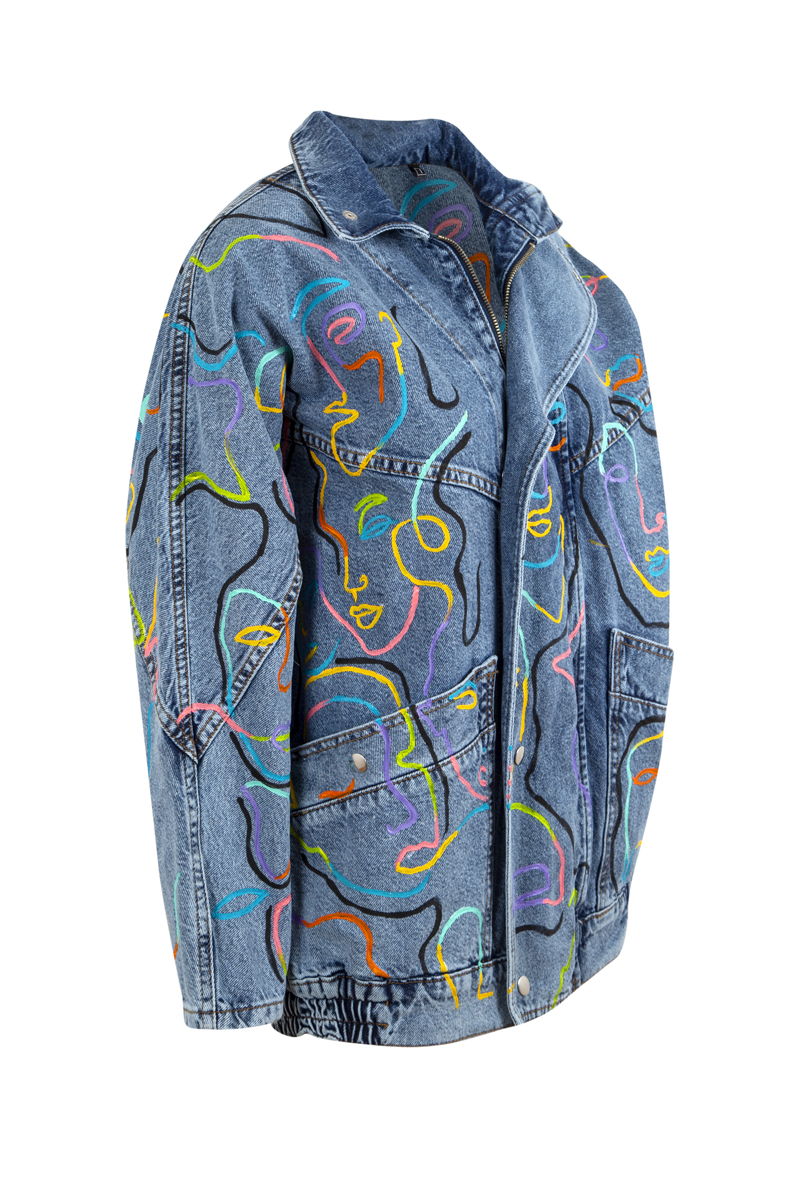 El boyaması, özel tasarım denim ceket.