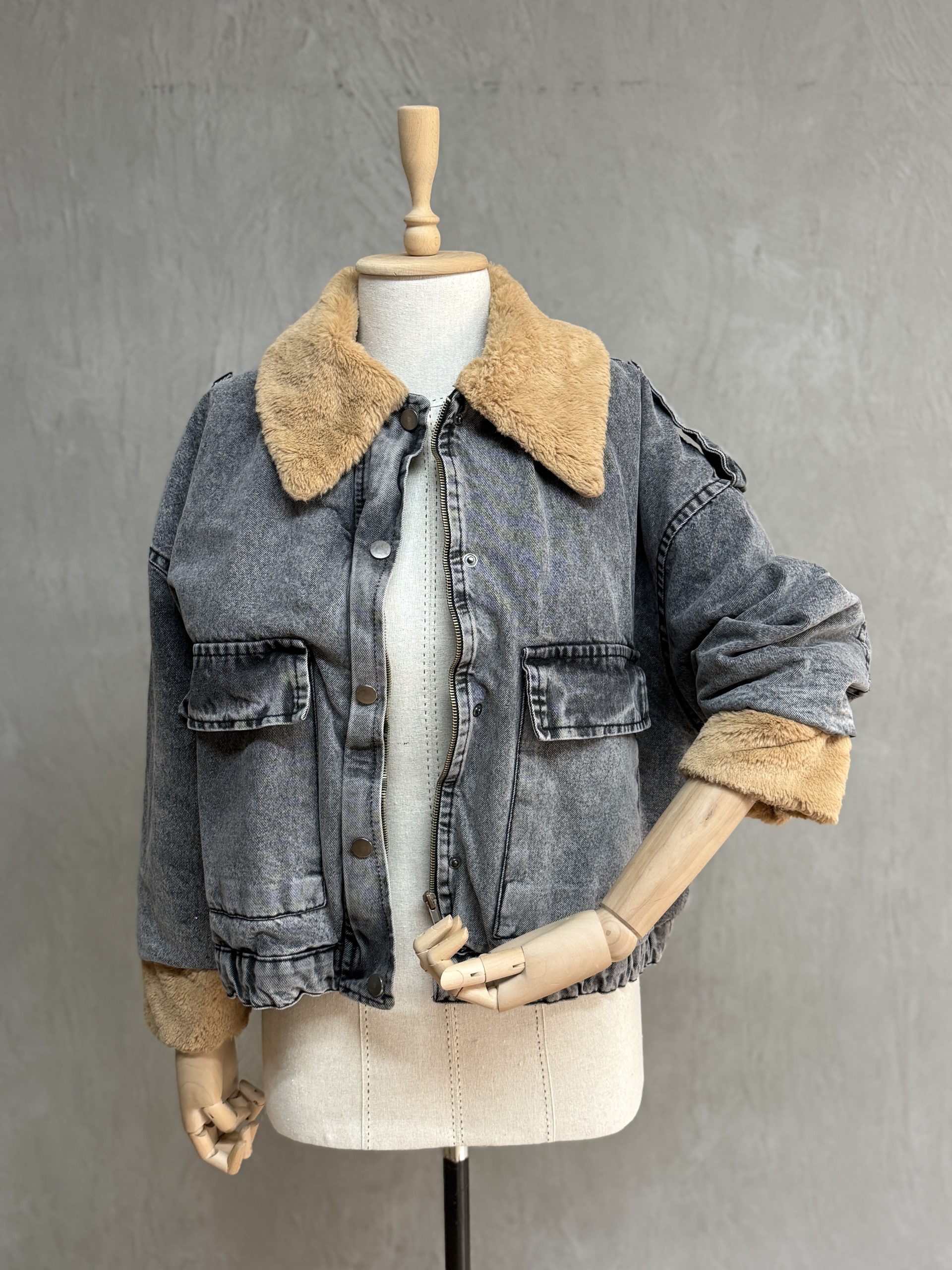 Kürklü Boyama Denim Ceket 02-Antrasit