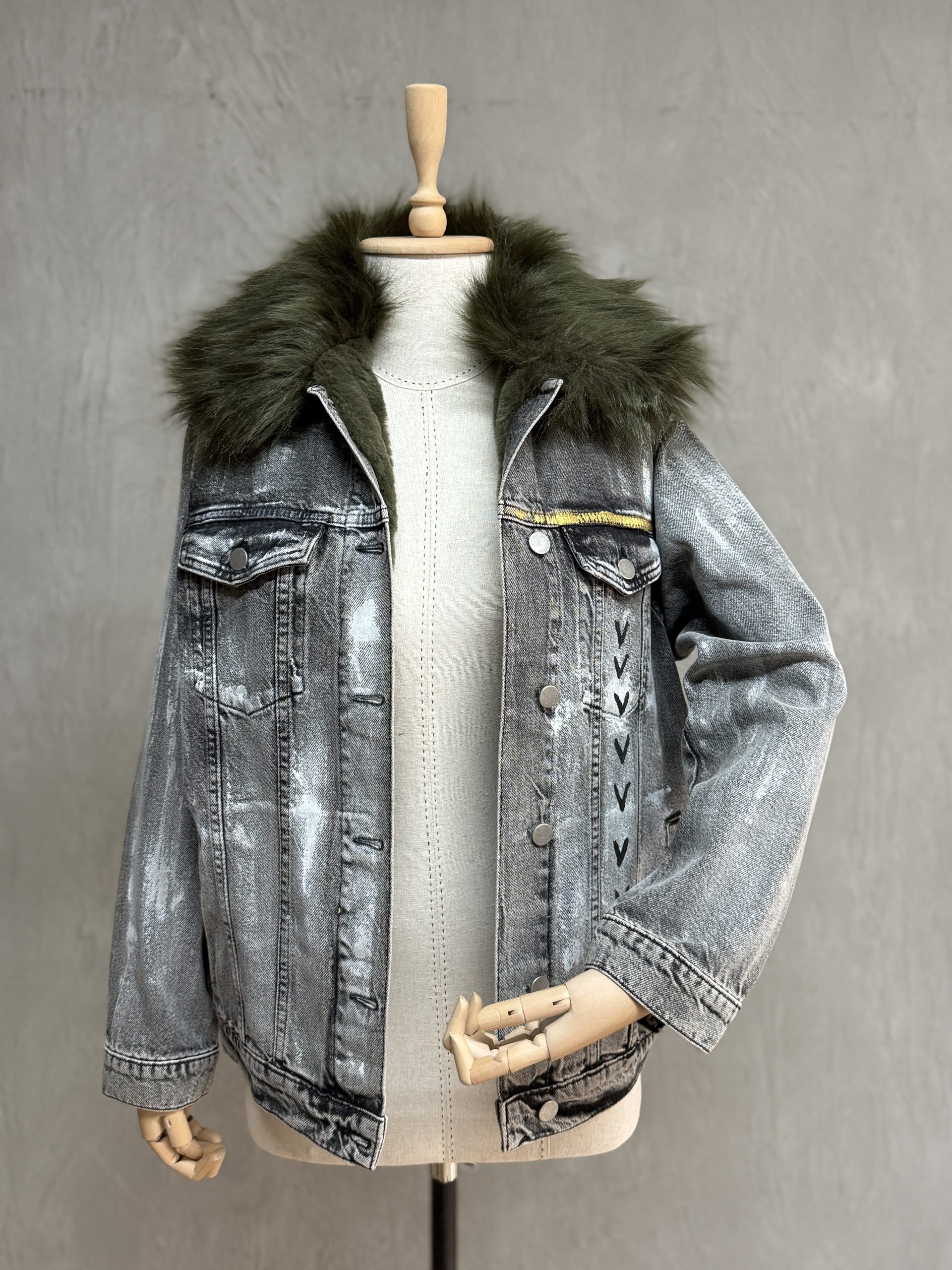 Kürklü Boyama Denim Ceket 02-Antrasit
