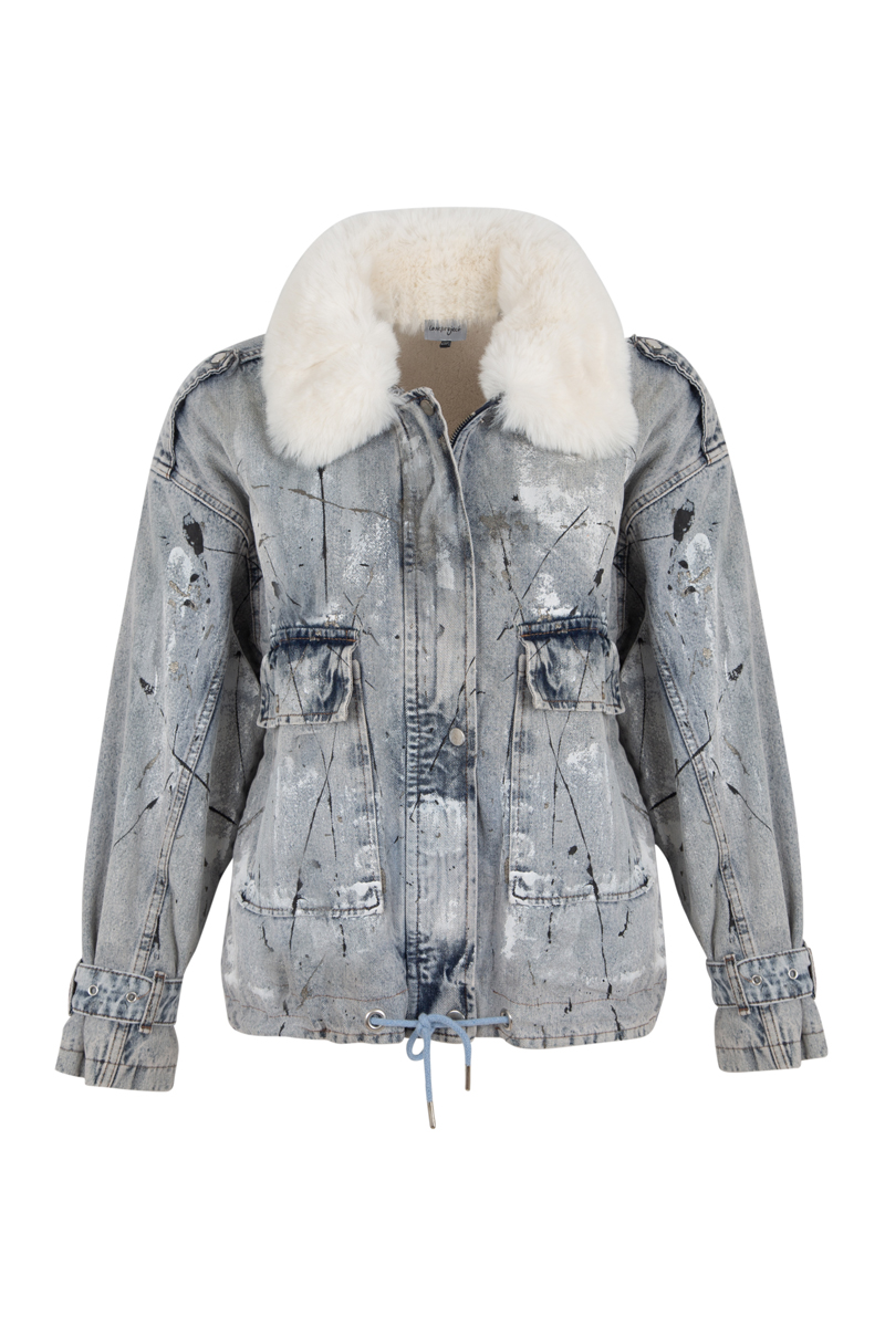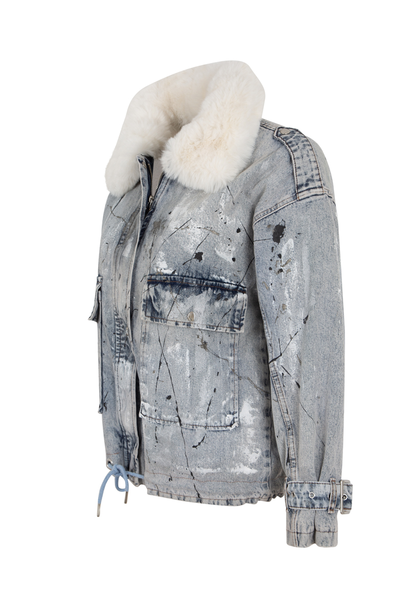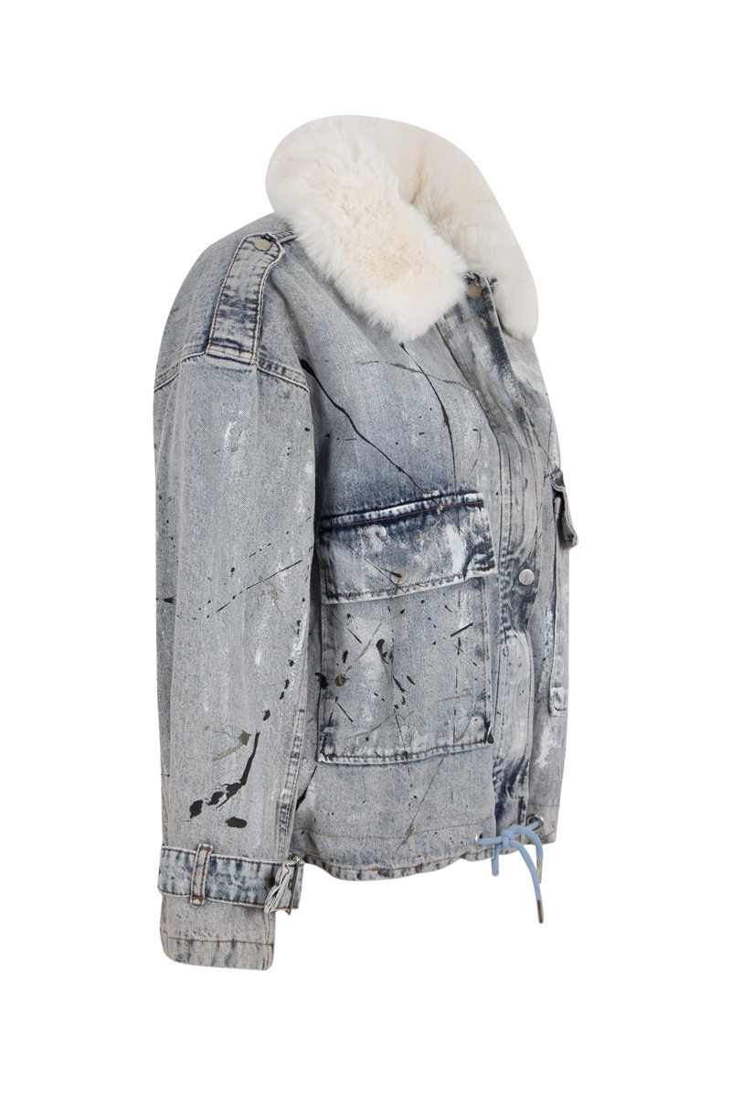 Makawee Kürklü Boyama Denim Ceket – Mavi