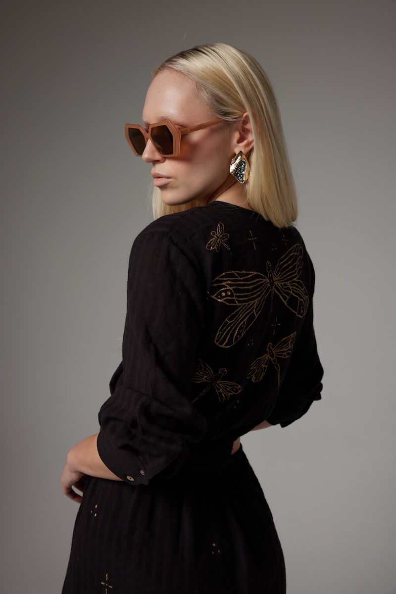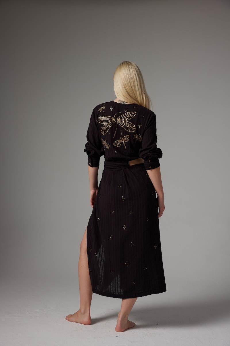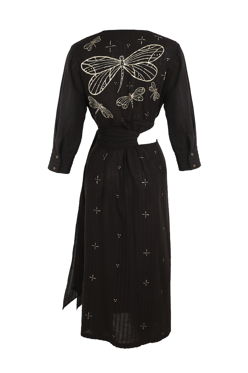 Mila Cut-Out Elbise (Dragonfly Boyamalı) – Siyah