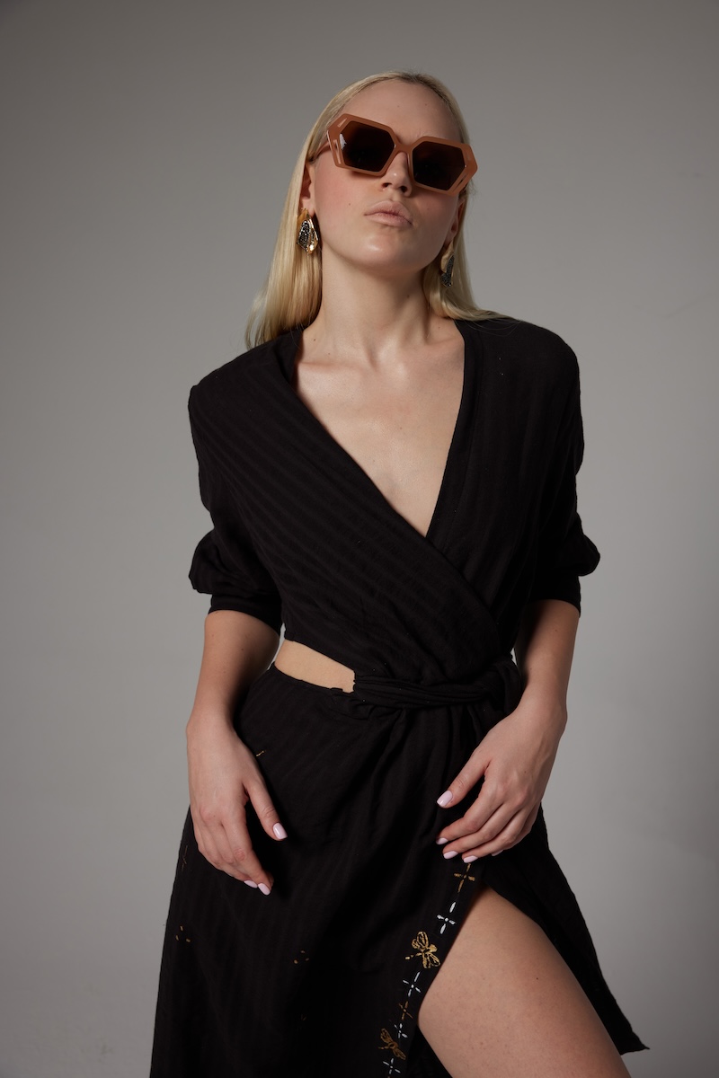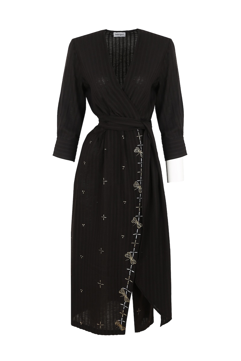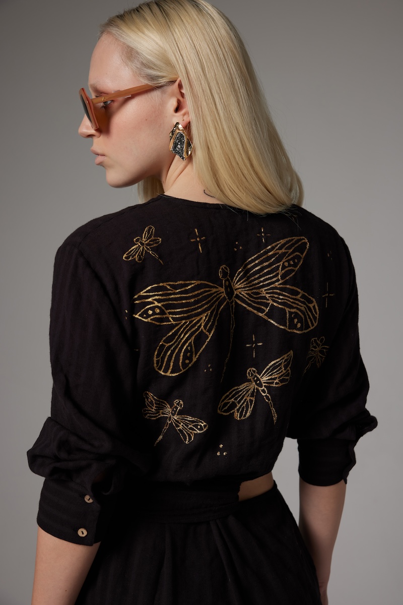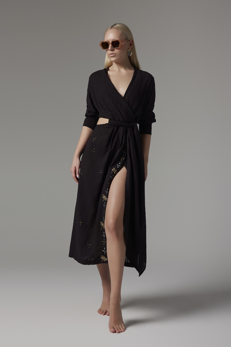 Mila Cut-Out Elbise (Dragonfly Boyamalı) – Siyah