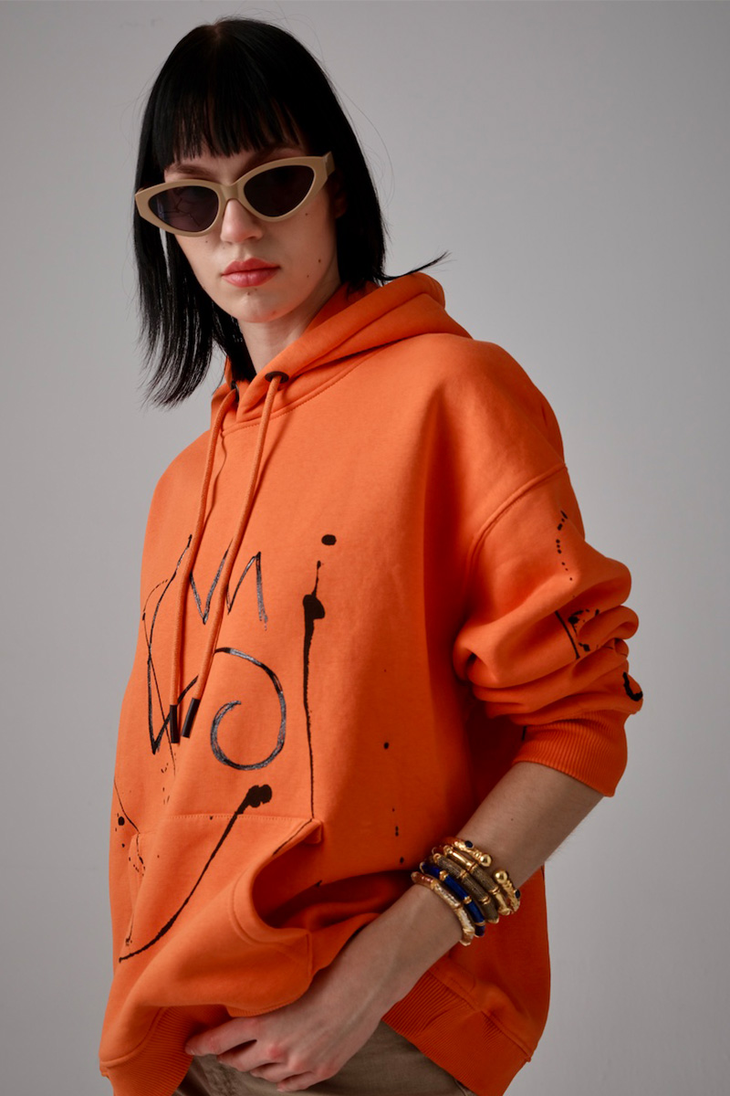 Queen El Boyaması Hoodie – Turuncu