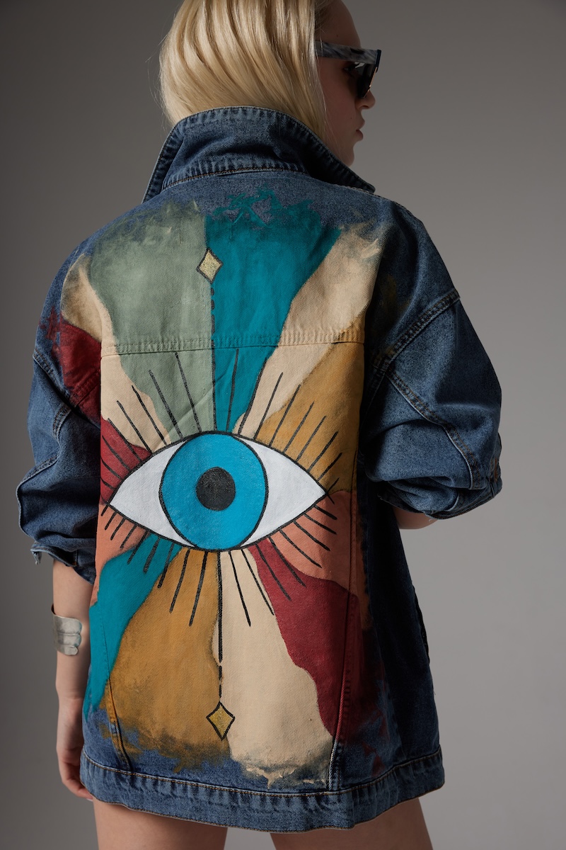 El boyaması, özel tasarım denim ceket.